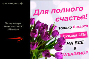 Создадим красивую видео-открытку для вашего коллектива с поздравлением к 23 февраля или 8 марта. Подберём музыку и текст. Или добавим вашу музыку и ваш текст. Озвучим видео открытку красивым женским или мужским голосом.